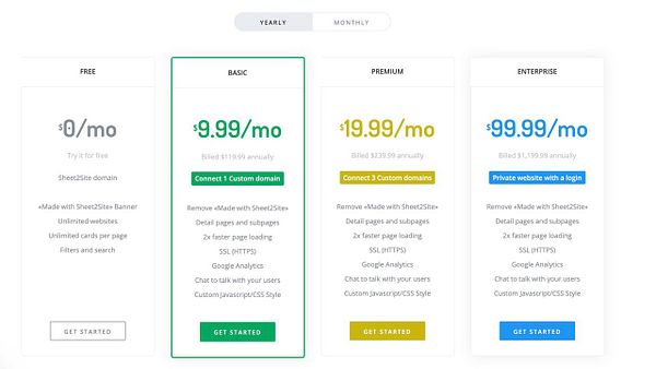 #sheet2site make new pricing table