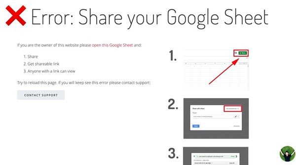 #sheet2site catch error if status permission denied and show error page with step by step instruction how to share sheet