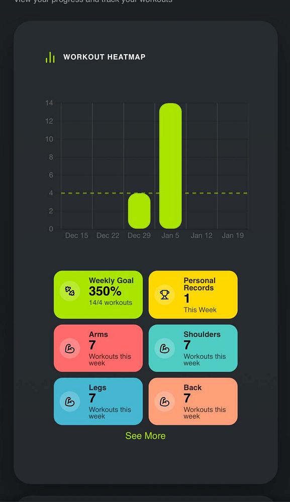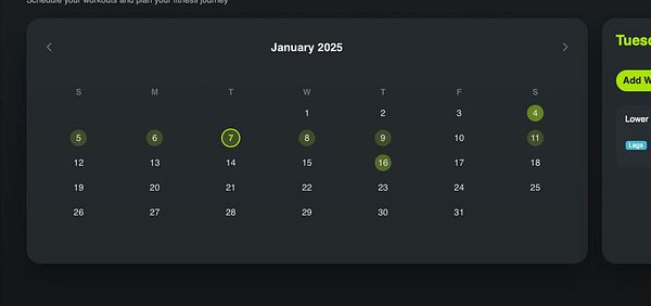 Completed workouts (past) are now visible on the calendar component, creating a heatmap