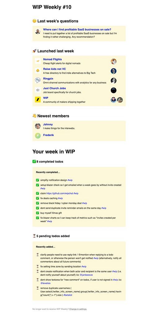 #wip Weekly, a weekly email with the most important things that happend in the WIP community.