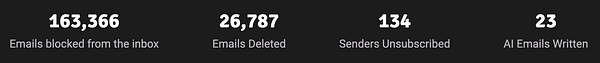 Finally fixed the memory leak bug. What a weird one. Started tracking number of emails blocked from the inbox.