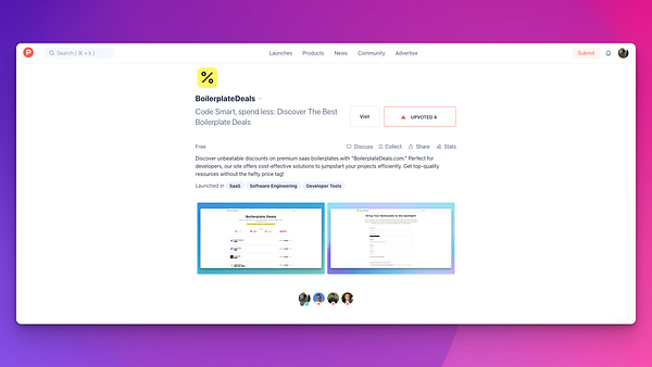 Launched BoilerplateDeals.com on Producthunt: www.producthunt.com/posts/boi…