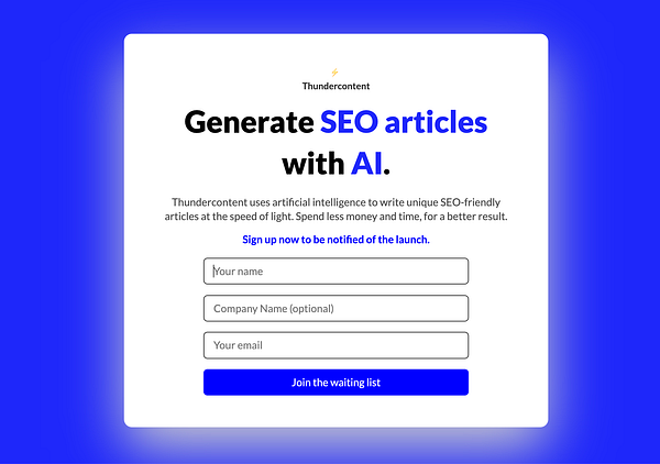 Create a V1 landing page to collect emails #thundercontent