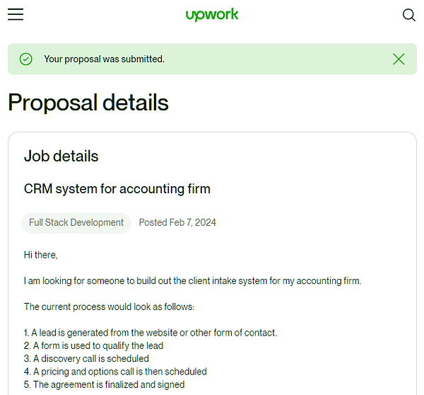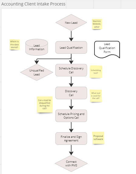 Submit proposal to implement a client intake system for an accounting firm. Created a quick flowchart of the process to increase my chances of getting hired.