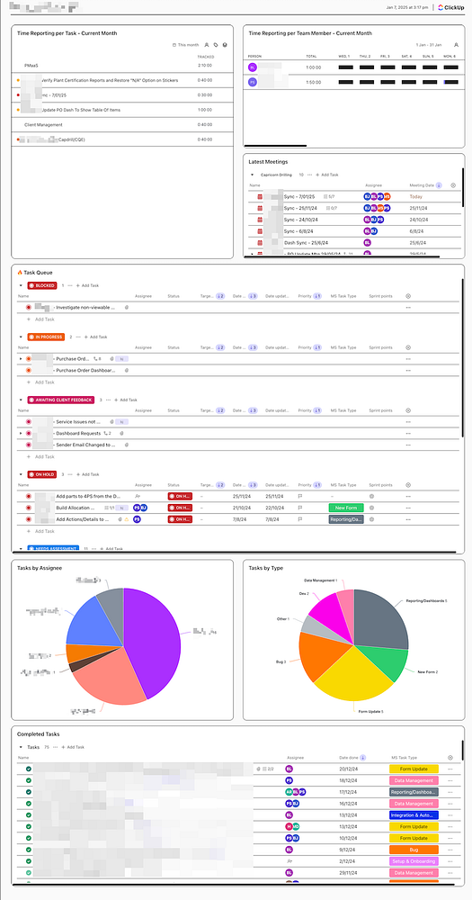 Client work: meeting with drilling company, PM work, client dashboard tracking set up
