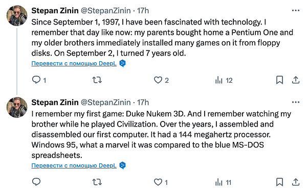 Post about first years in tech x.com/StepanZinin/status/1851…