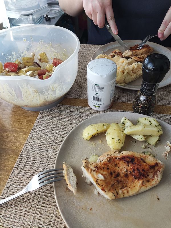 Chicken breasts with wet dough, it's one of the best meals I like. A bit hig in calories but still nutricious