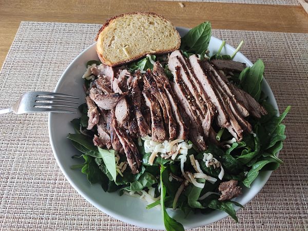 Steak with a salat and cheese