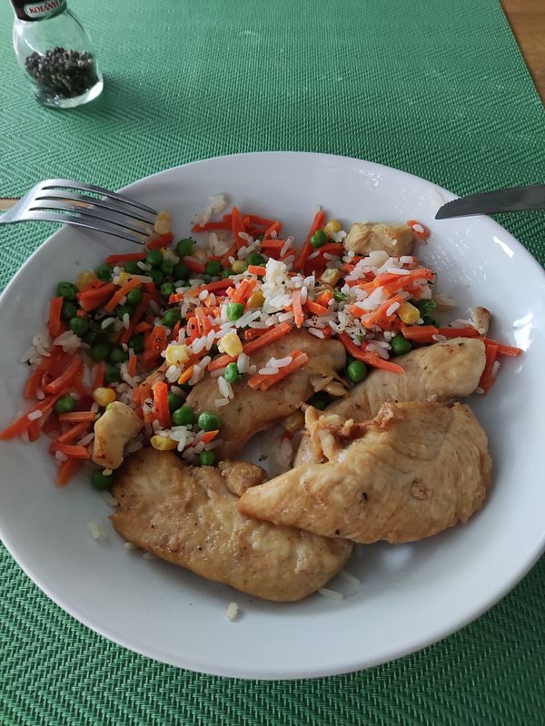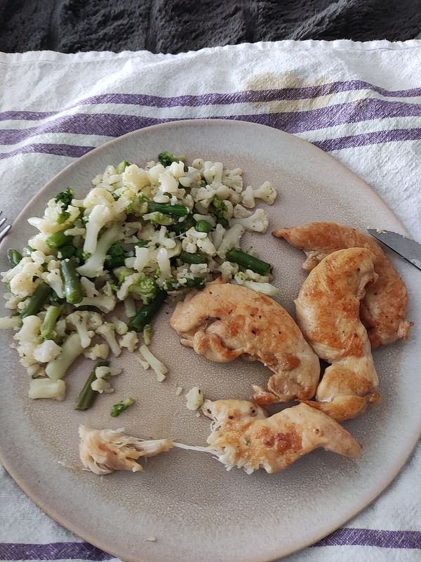 A perfect cutting meal, 200 grams of white chicken breasts, 60 grams of protein and veggies...