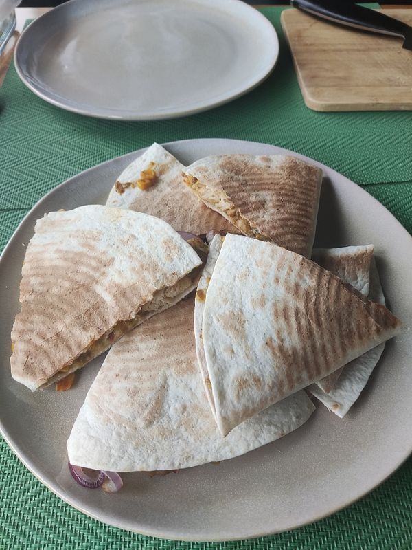 Protein fajitas, chicken breasts, cheese, onions, corn and some flavour ( non caloric)