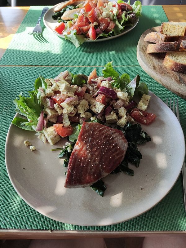 Chicken breasts with lots and lots of veggies, onions, olive oil, cheese, salate....good for cutting aka losing weight