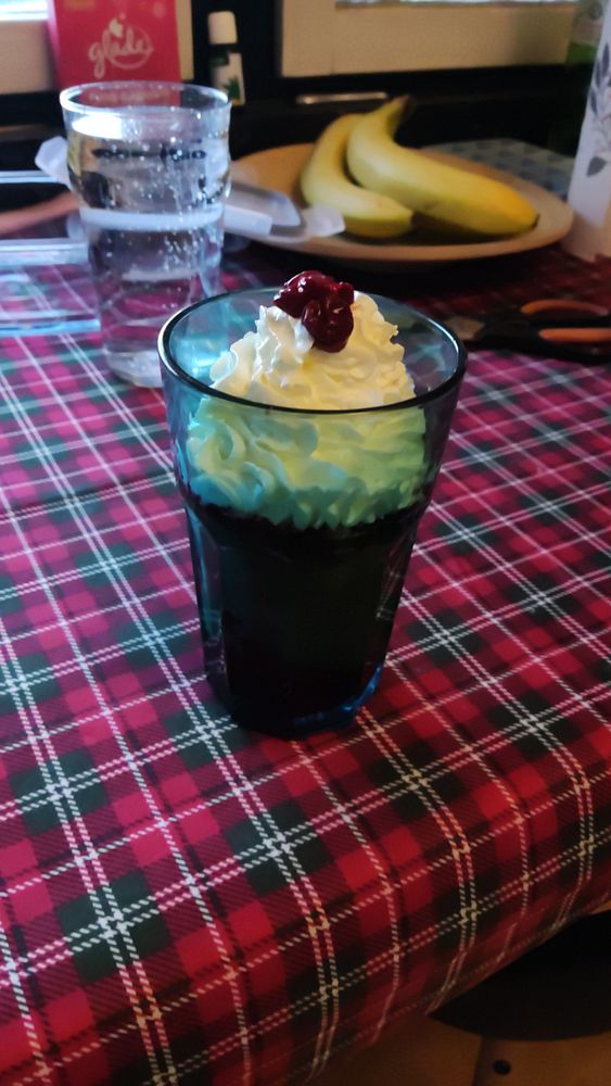 Eating something with a cherry that my wife made