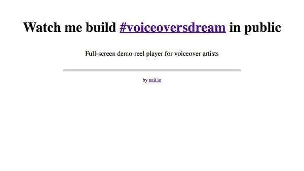 make quick-and-dirty landing page "Watch me build #voiceoversdream in public" with reference to wip.chat (wip.chat/products/1999)