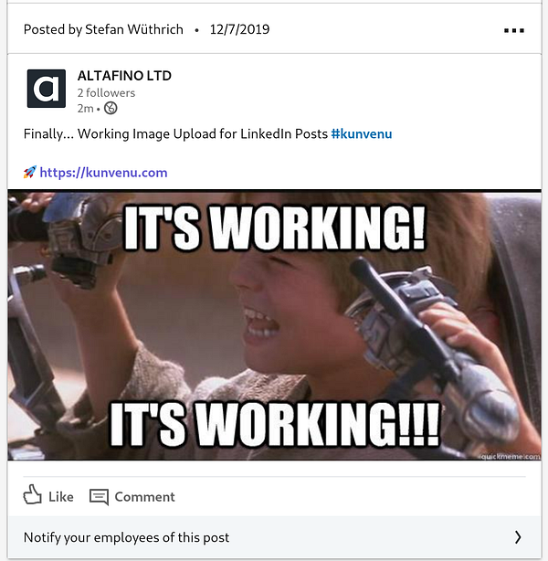 Finally.. working image upload linkedin #kunvenu