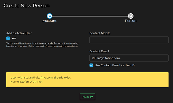 Finish createPerson feature to add/invite team members #nb