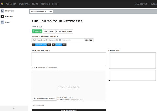Post As Selector (private or shared team networks) #kunvenu