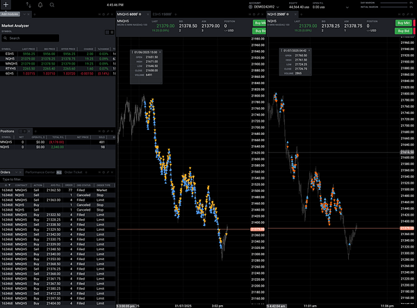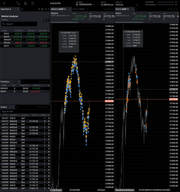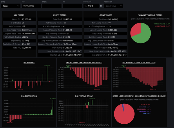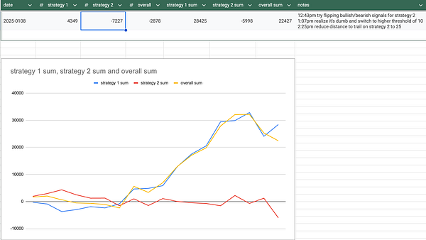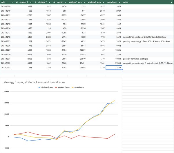 Overall: 46, Strategy1 (MNQ): 2958, Strategy2 (NQ): -2911