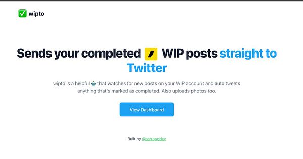 built a basic bot to query wip.co and auto push to Twitter - would you use this @levelsio @nilsw @jefftriplett @gijsheerkens?