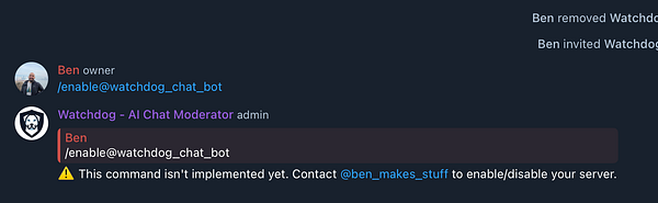 Remove /enable command for now so that random people can't start using the bot without my approval and without payment #watchdog