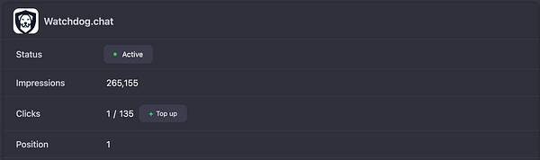 Experiment more with PPC ads for Watchdog and find optimal CPC to get #1 spot while minimizing budget -- either way it's free because TAAFT gave me credits, just want to use em optimally
