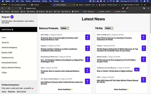 Write cloud functions to fetch Belarus and TikTok news stories ahead of 4pm topic launches #diagram