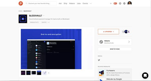 Launch #blockvault on ProductHunt
