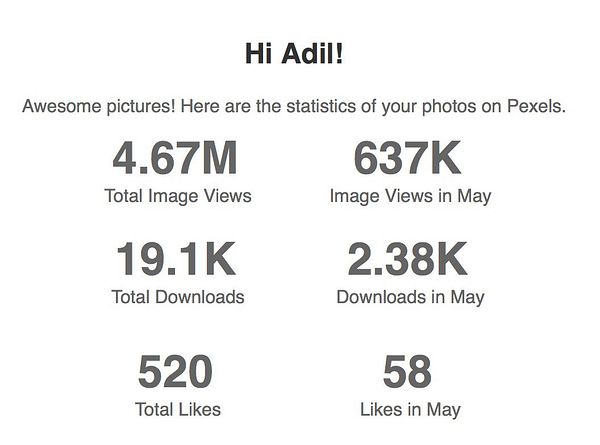 get stats on pexels