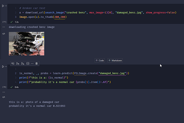 👨💻 re-create the "is the car damaged?" from kaggle | train the model on 64 picture and accuracy of the model is 92% 🤯
