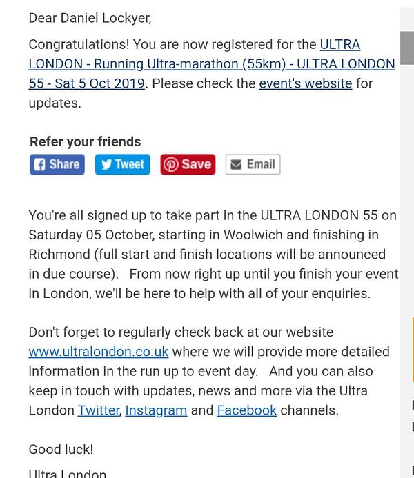 sign up for 55km ultramarathon #life
