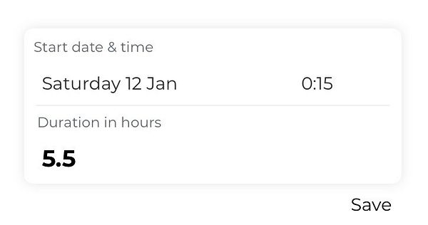 change 'end date' to 'duration in hours' #enter