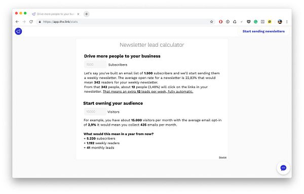 Newsletter lead calculator #thx