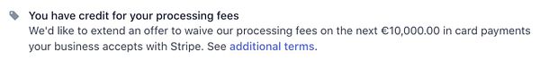 get €10k in stripe transaction credits