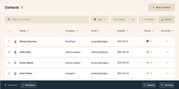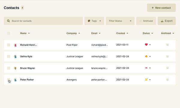 add checkboxes to contacts for bulk actions #wobaka