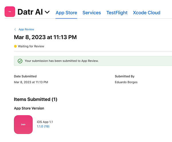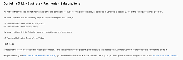 App denied by Apple because I forgot to put a link to terms of services in the app paywal and app store's description. fixing and re-submitting. #datr