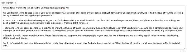 Generate App Store's description using ChatGPT with standup comedian role #datr
