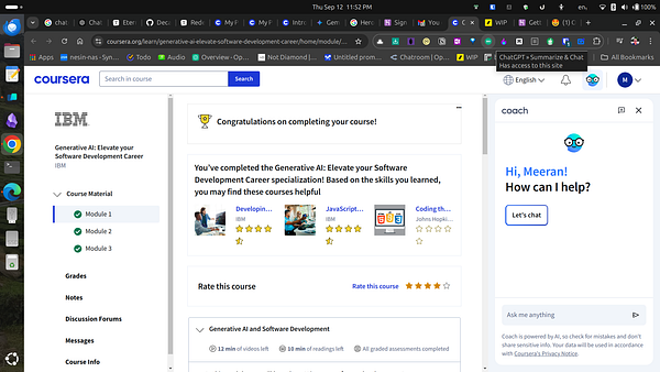 /done completed "Generative AI: Elevate your Software Development Career specialization! " in #coursera. Thanks for their kind financial assistance!