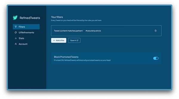 Implemented regex-based filters: users can now filter tweets/feeds with regex patterns 🤓
