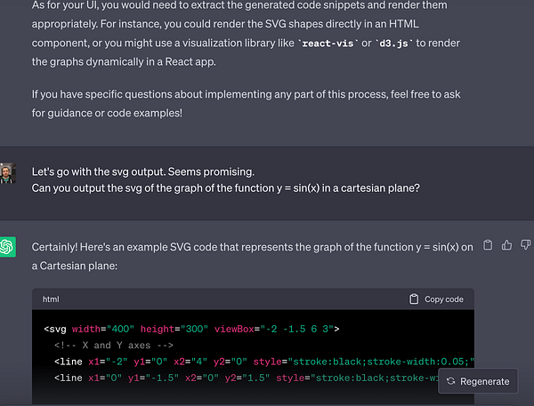 Asking ChatGPT suggestions on how to add a new feature for Albert Bro to also output graphs and images. Can I trust ChatGPT 3.5 to output SVGs? 🤔 Will see! chat.openai.com/share/c872bdc…