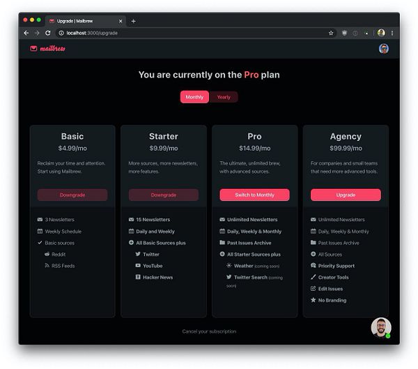 Finish implementing #mailbrew monetization