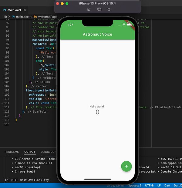 first hello world in Flutter #voicechanger