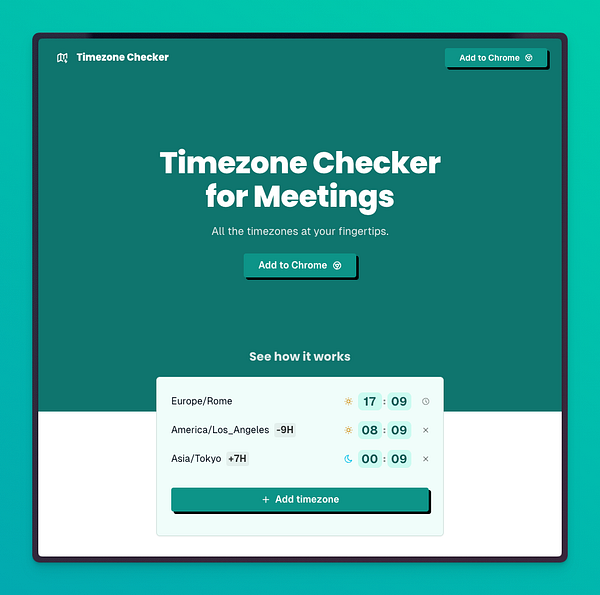 released a Timezone Checker free Chrome Extension. To keep all the important timezones at your fingertips ➡️ timezonechecker.app/ 🗺️