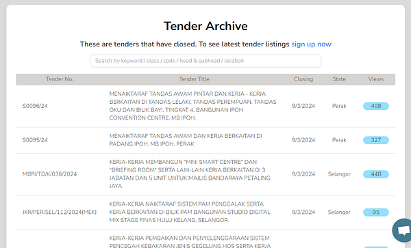Implemented a tender archive page that will hopefully help with SEO for