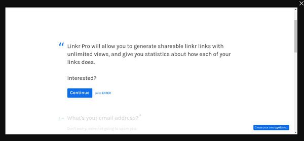 create poupup typeform for #linkr pro