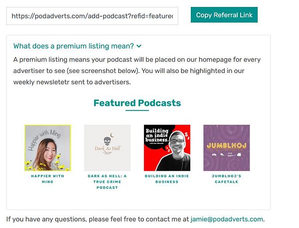 Explain what premium listing means below the referral link