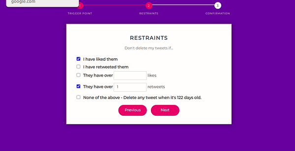 Add "none of the above option" to restraints so user can delete any tweet after it passes a certain age #autodeletetweets