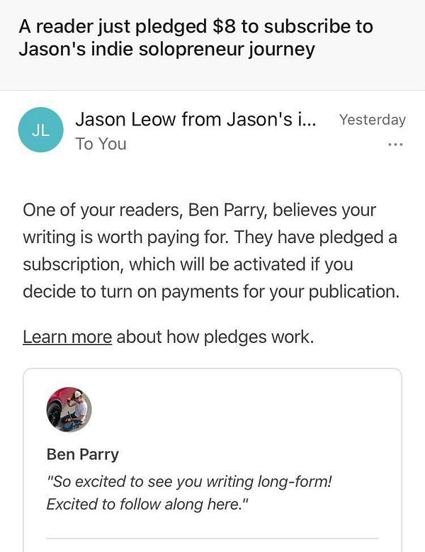 Got my FIRST pledge for paid subscription to my indie solopreneur newsletter! Wow too flattered, @Via_Benjamin! Not sure if I should though... π€