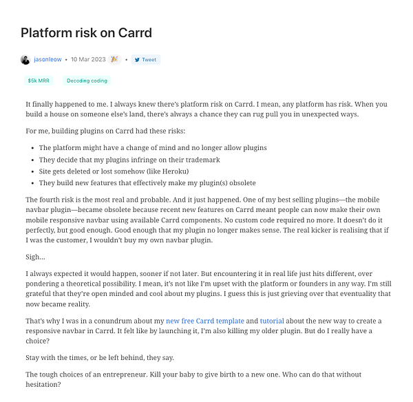 Day 799 - Platform risk on Carrd - golifelog.com/posts/platform-… #lifelog