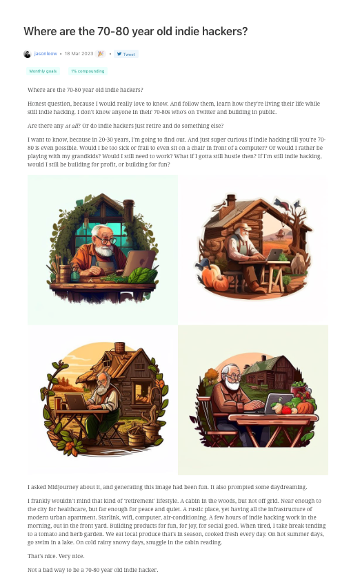 Day 807 - Where are the 70-80 year old indie hackers? - golifelog.com/posts/where-are… #lifelog