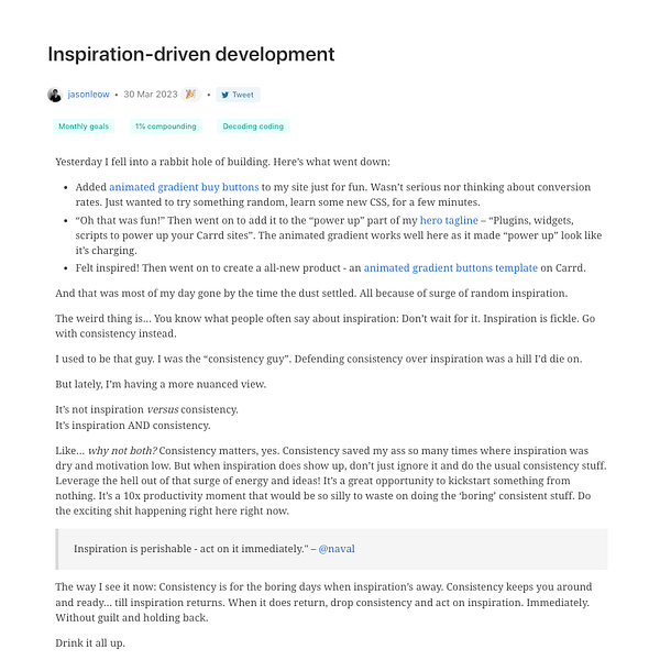 Day 819 - Inspiration-driven development - golifelog.com/posts/inspirati… #lifelog