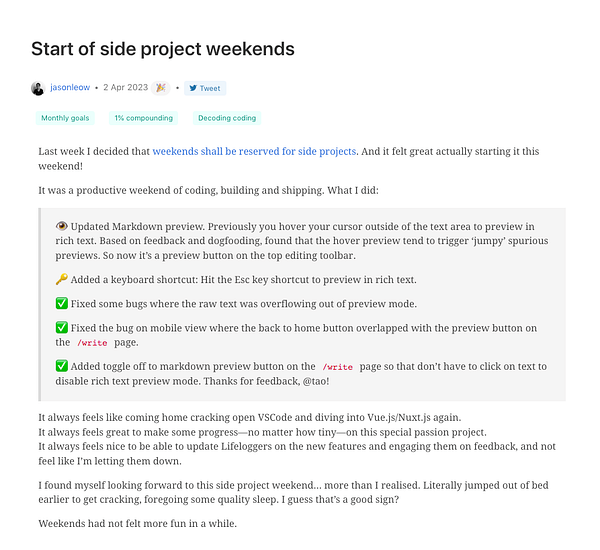 Day 822 - Start of side project weekends - golifelog.com/posts/start-of-… #lifelog